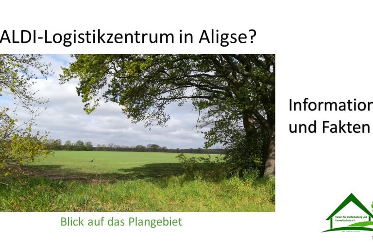 Dies ist bei der geplanten Ansiedlung eines Aldi-Logistikzentrums und der damit verbundenen Umwidmung in ein Industriegebiet eindeutig nicht gegeben. In Aligse ist die Gesamtbelastung des Ortes durch Lärm und Abgase schon jetzt sehr hoch und wird in den nächsten Jahren sicherlich noch steigen.